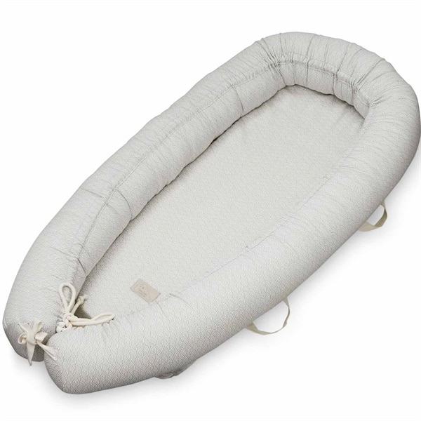 Dette er det perfekte babynest for de nyfødte. Det er et super vakkert og deilig babynest med en fin varm farge og fint print. Bunnen av reiret har en fast treplate som gjør den stabil. I tillegg er det justerbare snorer slik at størrelsen kan reguleres.