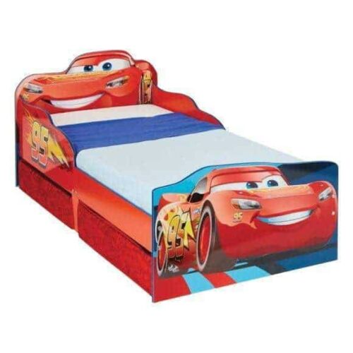 Småbarnet ditt vil elske denne sengen med Disney Cars-motiv. Den ligger lavt til bakken og har en beskyttende sengeramme. To praktiske oppbevaringsbokser under sengen følger med, og den er enkel å montere.