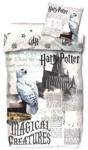 Harry Potter sengetøy – 140×200 cm – Harry Potter sengesett – Hogwarts og uglen Hedwig – 2 i 1 design – 100% bomull