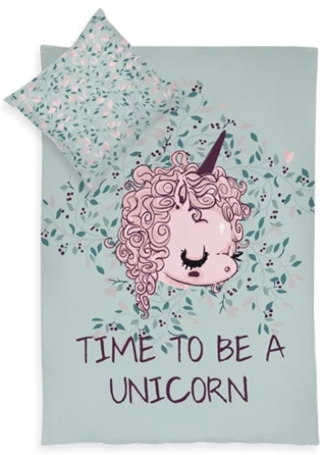 Junior sengetøy – 100×140 cm – Sengesett med Unicorn – 2 i 1 design – 100% økologisk bomull
