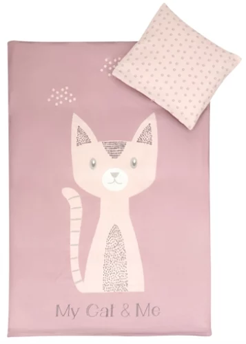 Rosa junior sengetøy – 100×140 cm – Sengesett junior rosa katt – 100% bomull