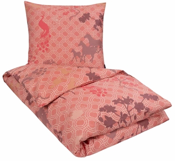 Dynetrekket er laget av høykvalitets bomullsateng og dobbeltsidig trykk. Mønsteret på forsiden er litt forskjellig fra baksiden. Dynetrekket er ikke sydd slik at du enkelt kan ta det av for vask eller skifte av sengetøy.