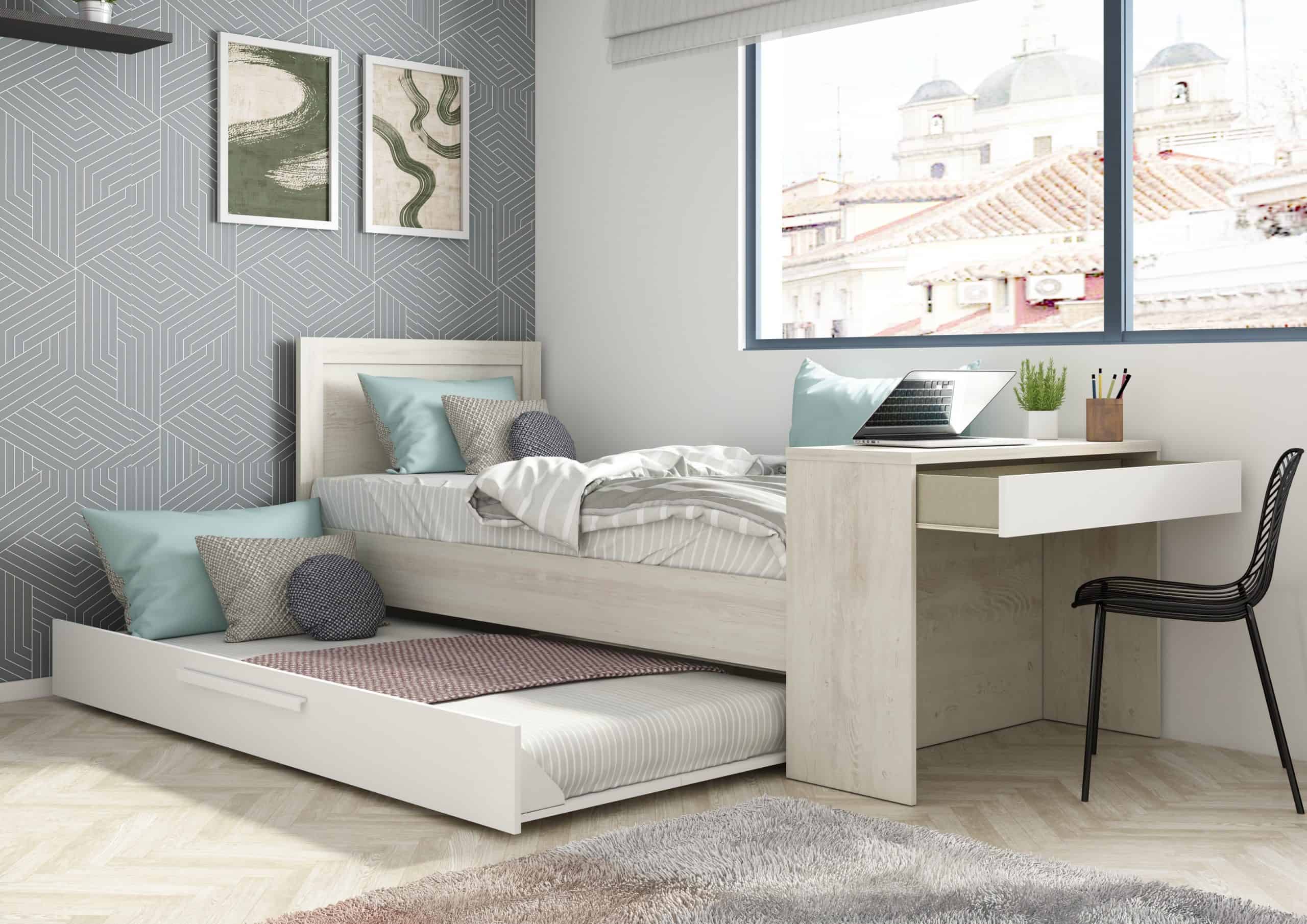 Shipley multiseng Trasman er en enkeltseng som inneholder alt. Under sengen kommer en uttrekkbar skuff som kan brukes til å sove. Ved fotenden av sengen et praktisk skrivebord med skuff. Dette er sengen som passer for både barn, unge og voksne.