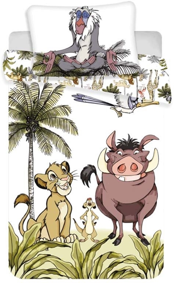 Du kjenner historien, du elsker historien. Nå kan du leve det. Lion King Junior Dynetrekk sett er et must for enhver liten fan av Disney-klassikeren. Dette settet inkluderer et dynetrekk og to putevar. Dynetrekket er laget av 100% bomull mens putetrekkene er laget av 100% polyester. Settet har fargerike illustrasjoner av Simba, Timon og Pumbaa på hvit bakgrunn.